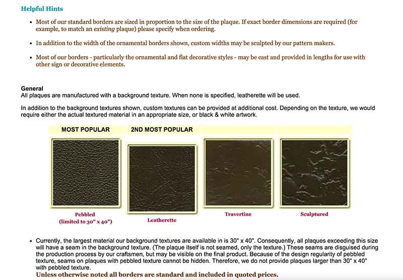 These consist of flat borders and are available at no extra cost on all standard sizes. Some designs are not practical on small namestrips under 3" in height. All Standard borders are included in quoted prices, unless otherwise noted.